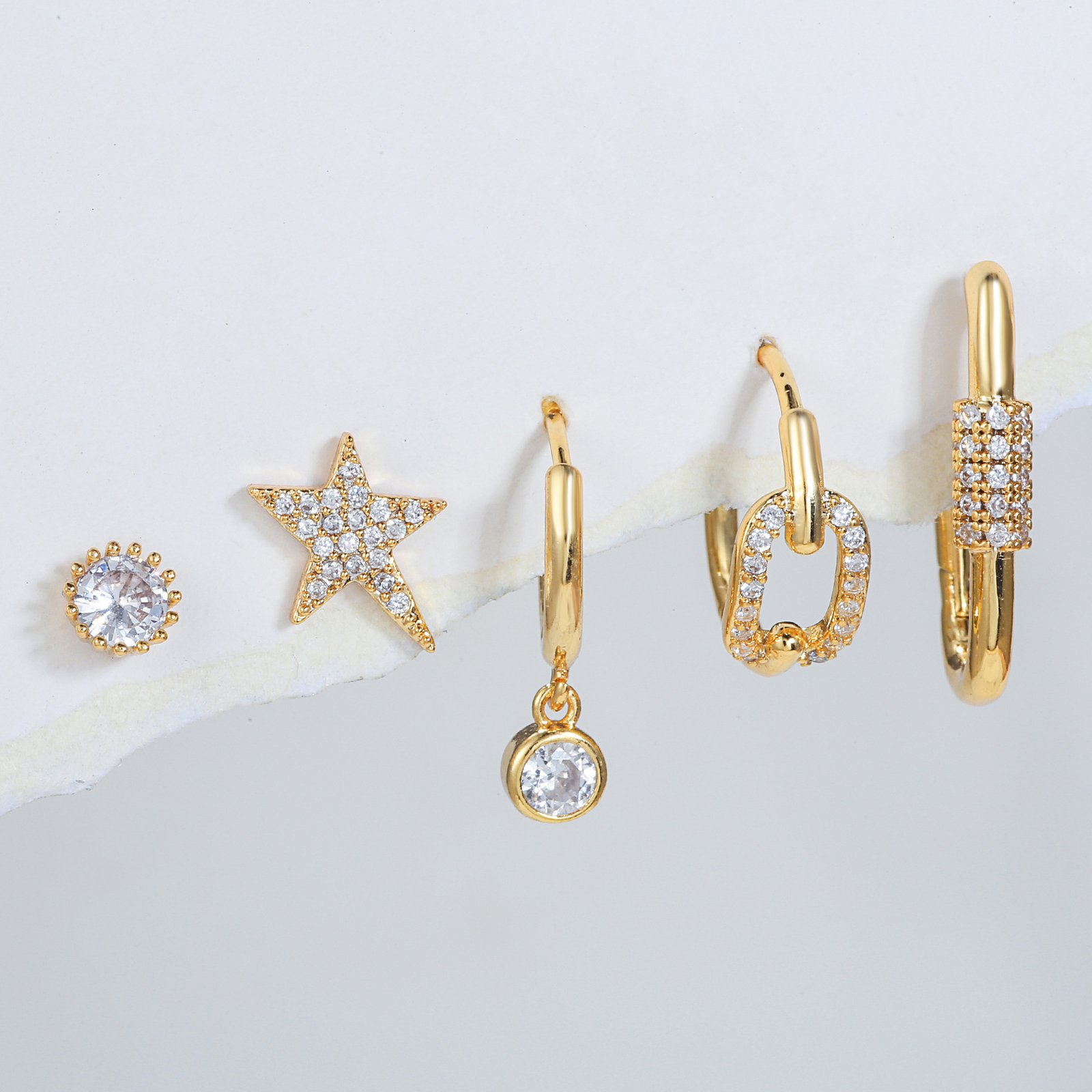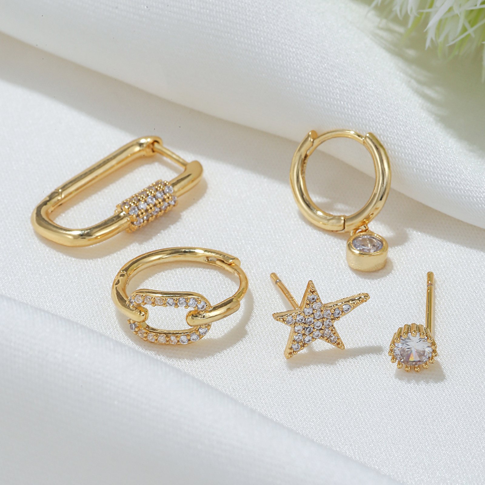 Zirconia star stud earrings huggie earrings set china supplier factory
