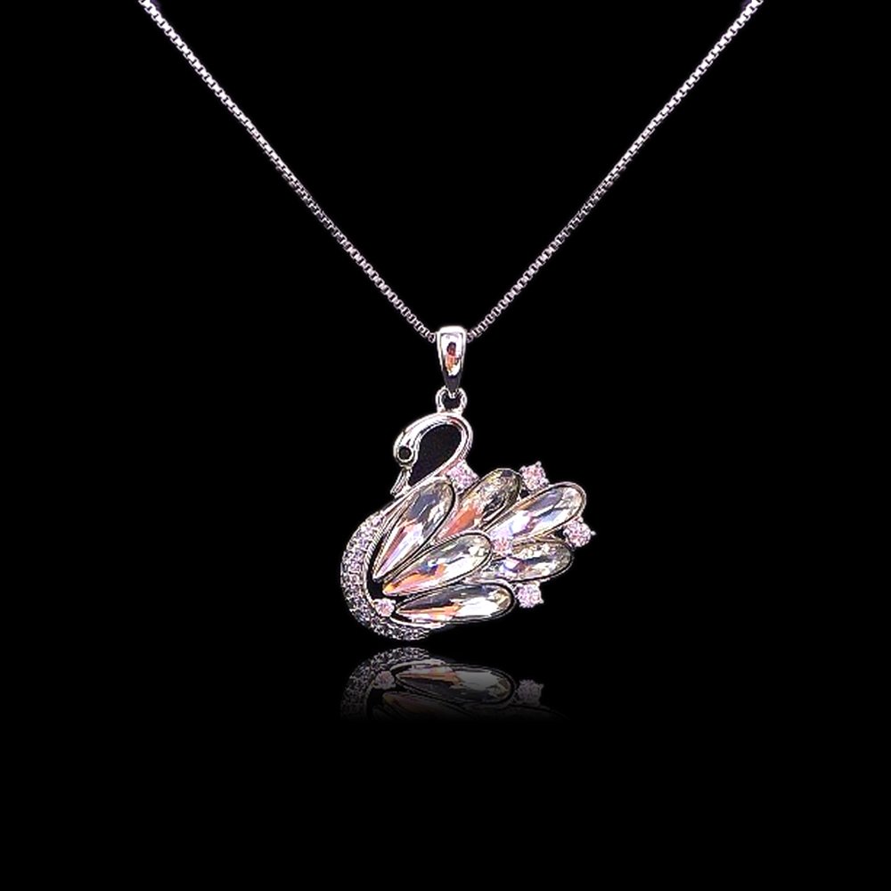 Wholesale unique swan necklace with Swarovski element crystals and platinum-plated copper—factory-price design from junejewelry.com.