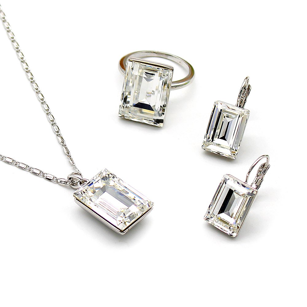 Rectangle Swarovski element crystal jewelry set wholesale – Minimalist
