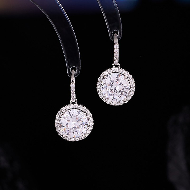 Simple Round Zircon Necklace and Earrings Set, new luxury geometric circle design, all-match clavicle chain, high-end.