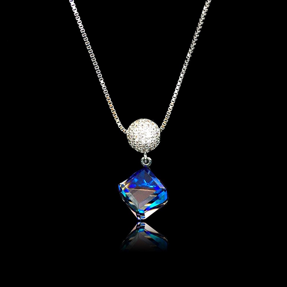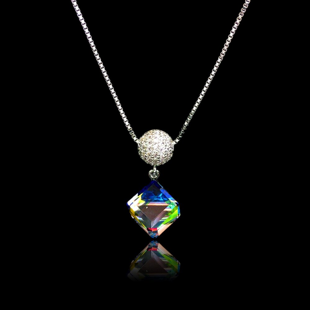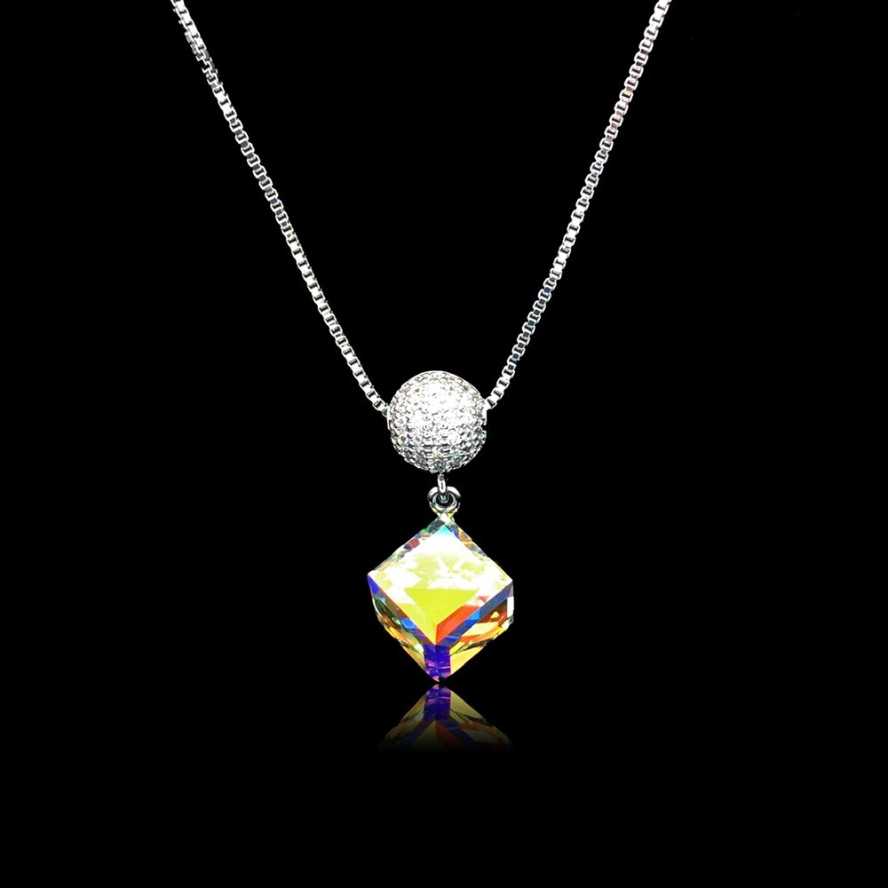 Swarovski element cube ball pendant with platinum plating copper . Commercial-grade quality. Customizable for wholesale orders. Bulk Discounts for Retailers.