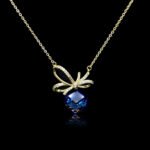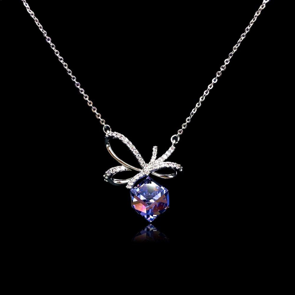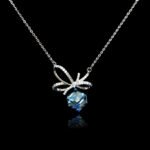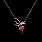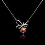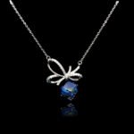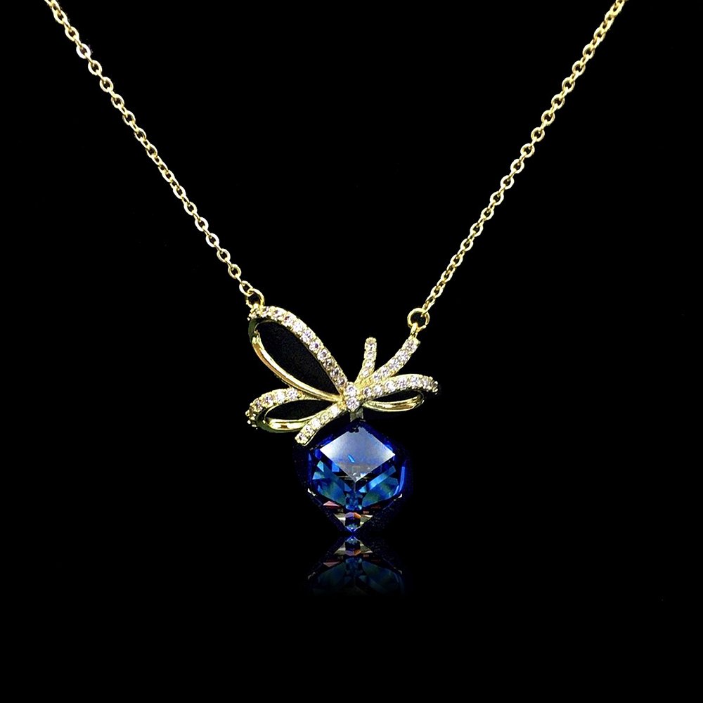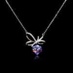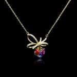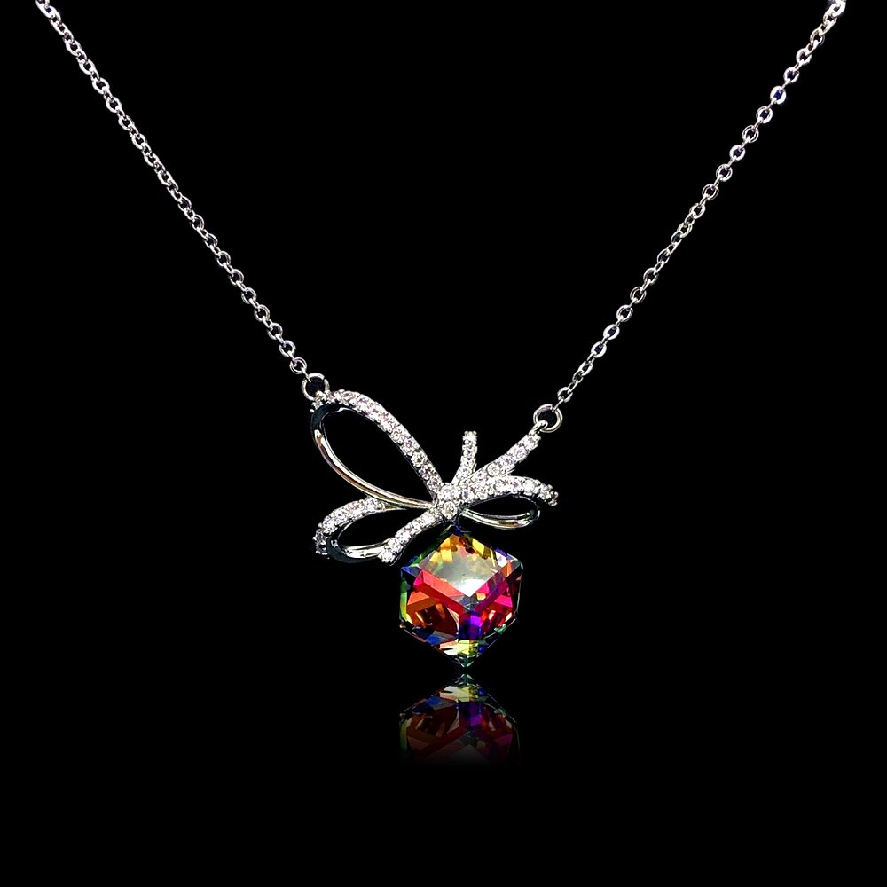 Sleek 14k gold-plated with geometric cube stones. Durable brass core, Swarovski element crystals bow pendant necklace. Perfect for luxury boutiques. Bulk discounts available.
