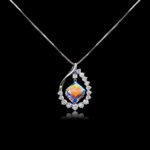 Our wholesale teardrop pendant necklace offers elegant design with a Swarovski Elements cube stone, made from copper with platinum plating, tarnish-resistant. Ideal for high-demand retailers.