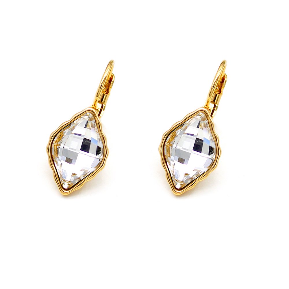 Swarovski element Irregular Crystal Leverback Earrings Wholesale JuneJewelry Unique Single Stone Irregular Shape Crystal Earrings Real Gold Plated Original Design Swarovski Element Leverback Earrings Factory Price