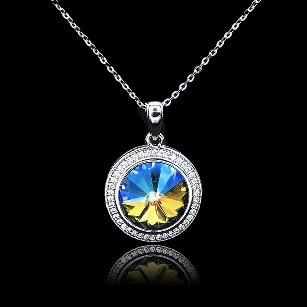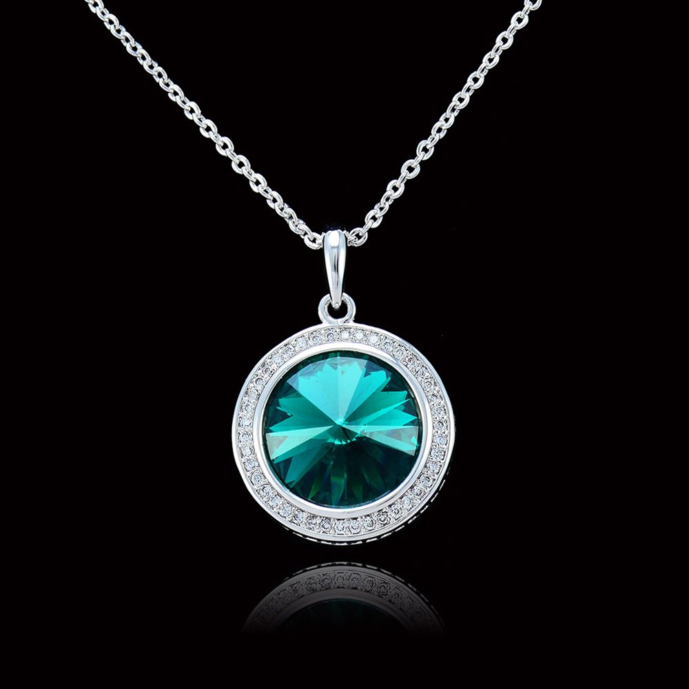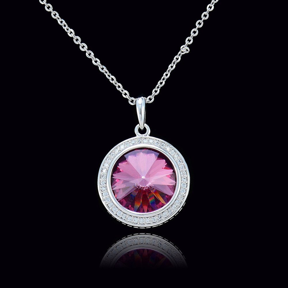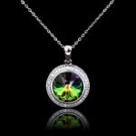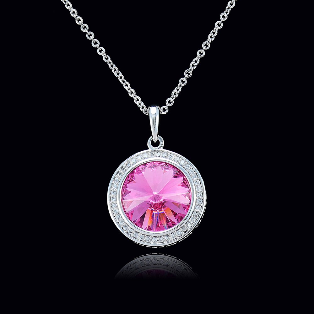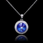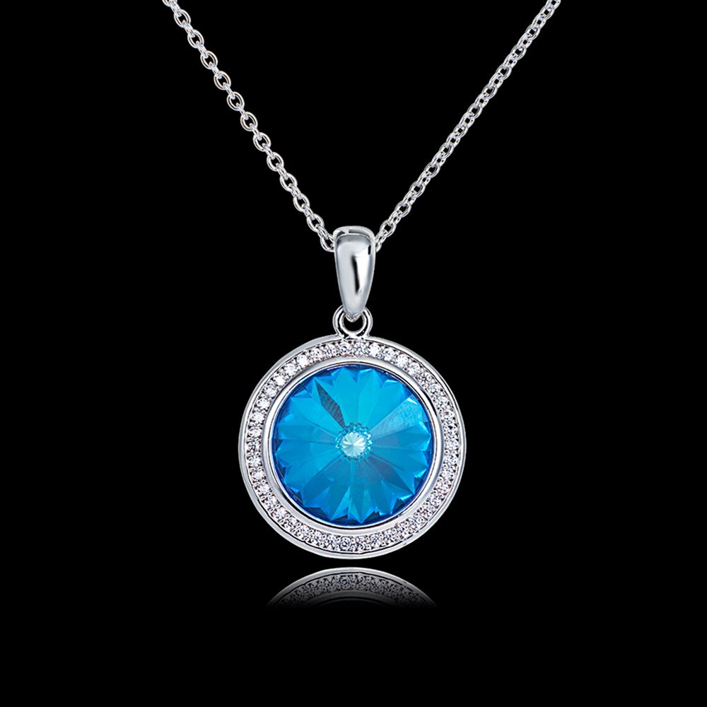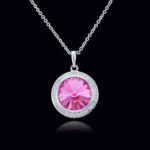 Our Swarovski element necklace wholesale features round stones on platinum-plated copper, offering a dazzling, luxurious accessory for daily wear, parties, and weddings. No MOQ, free shipping worldwide.