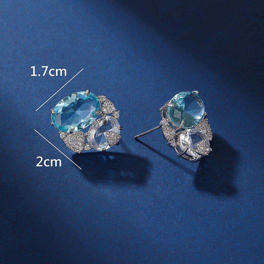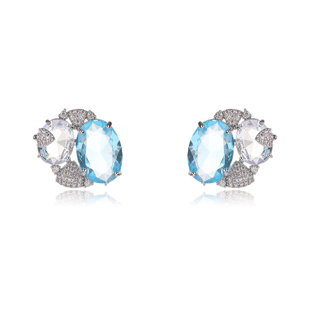 Expand your high-end inventory with our Wholesale Blue Zircon Earrings—we have masterfully combined oceanic brilliance with sophisticated structural design. Each earring features a stunning, sky-blue oval zircon that serves as a refreshing centerpiece for the entire piece. We meticulously paired this focal stone with clear accent zircons to create a balanced and luxurious aesthetic.