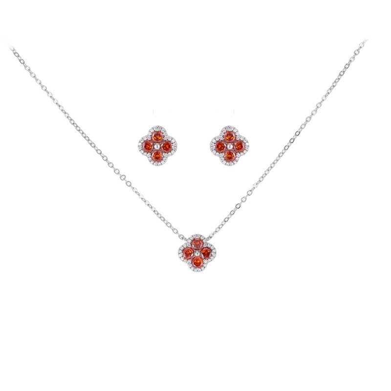 Wholesale Clover Zircon Jewelry Set – Necklace & Earrings