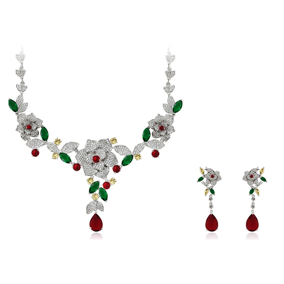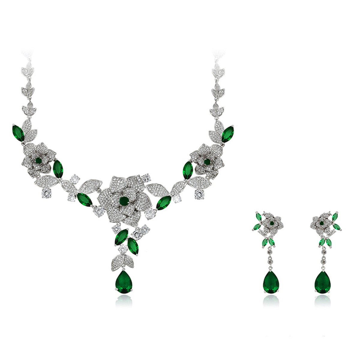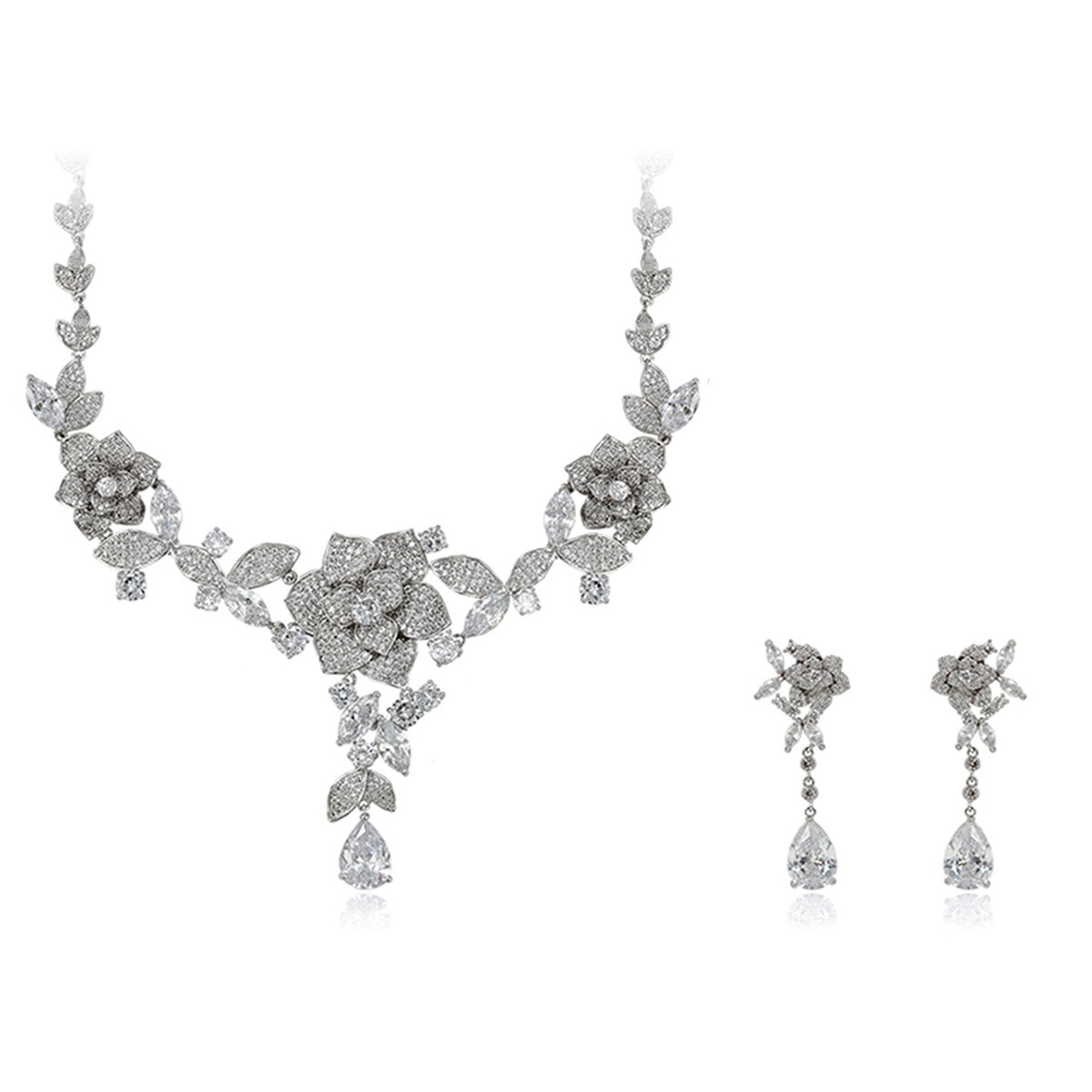 Wholesale Floral Zircon Jewelry Set – Platinum Plated