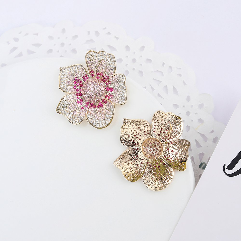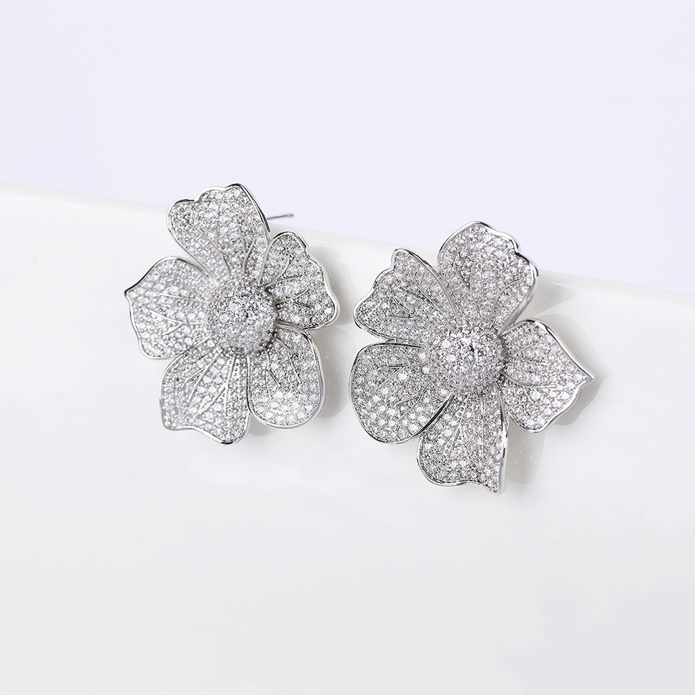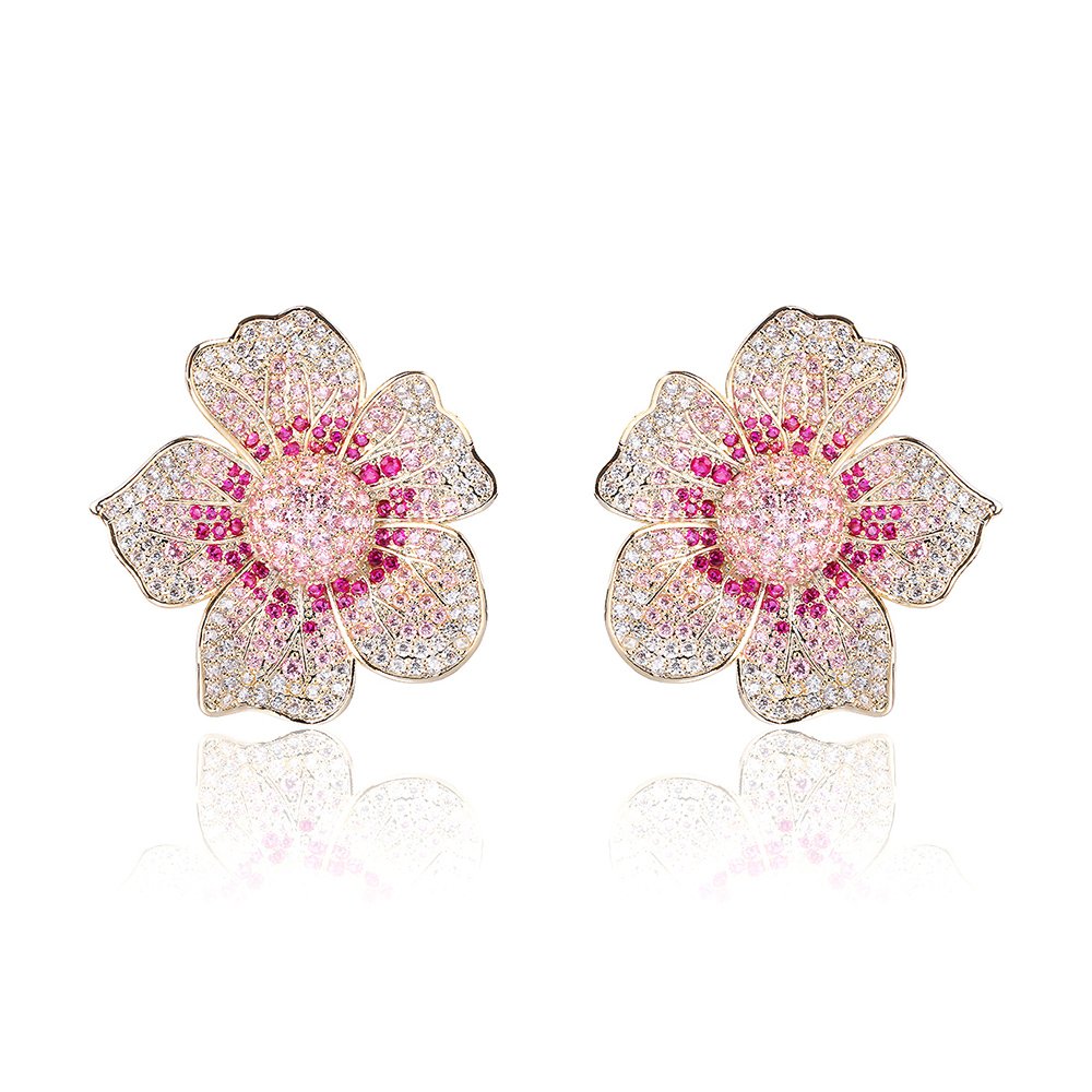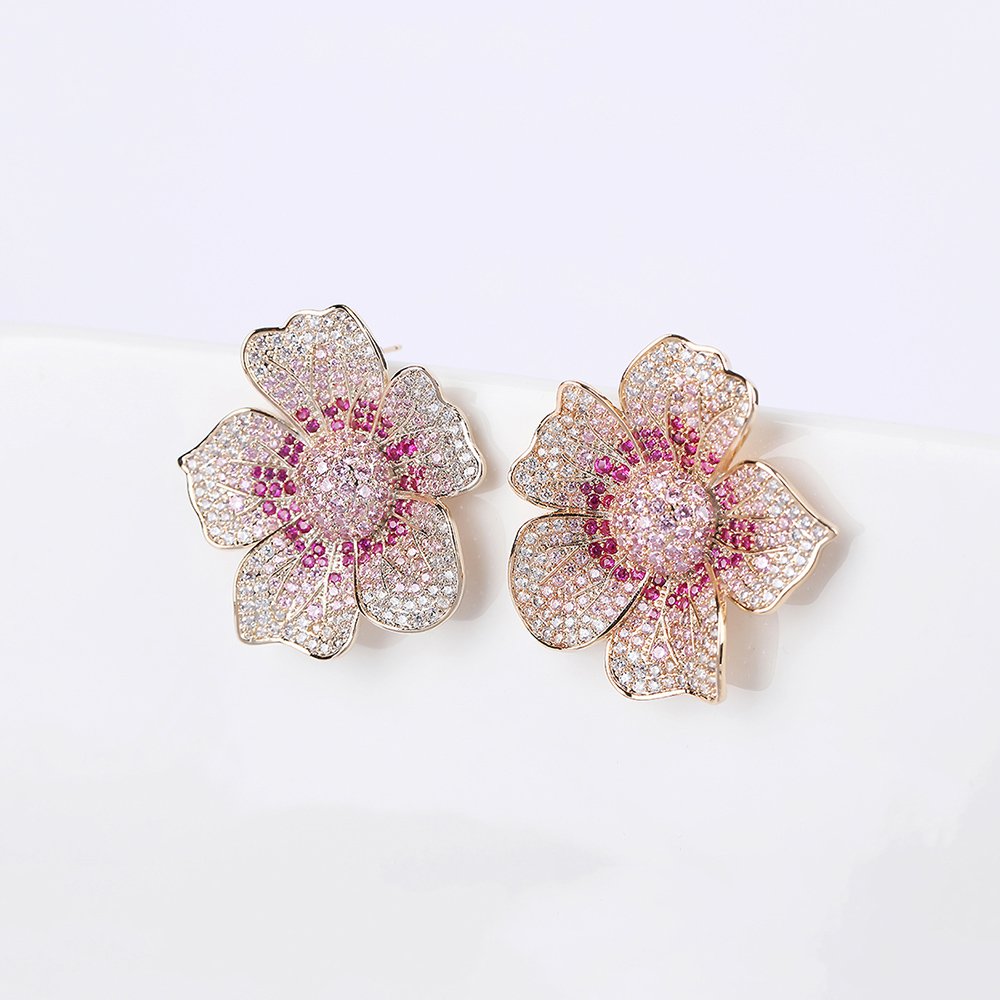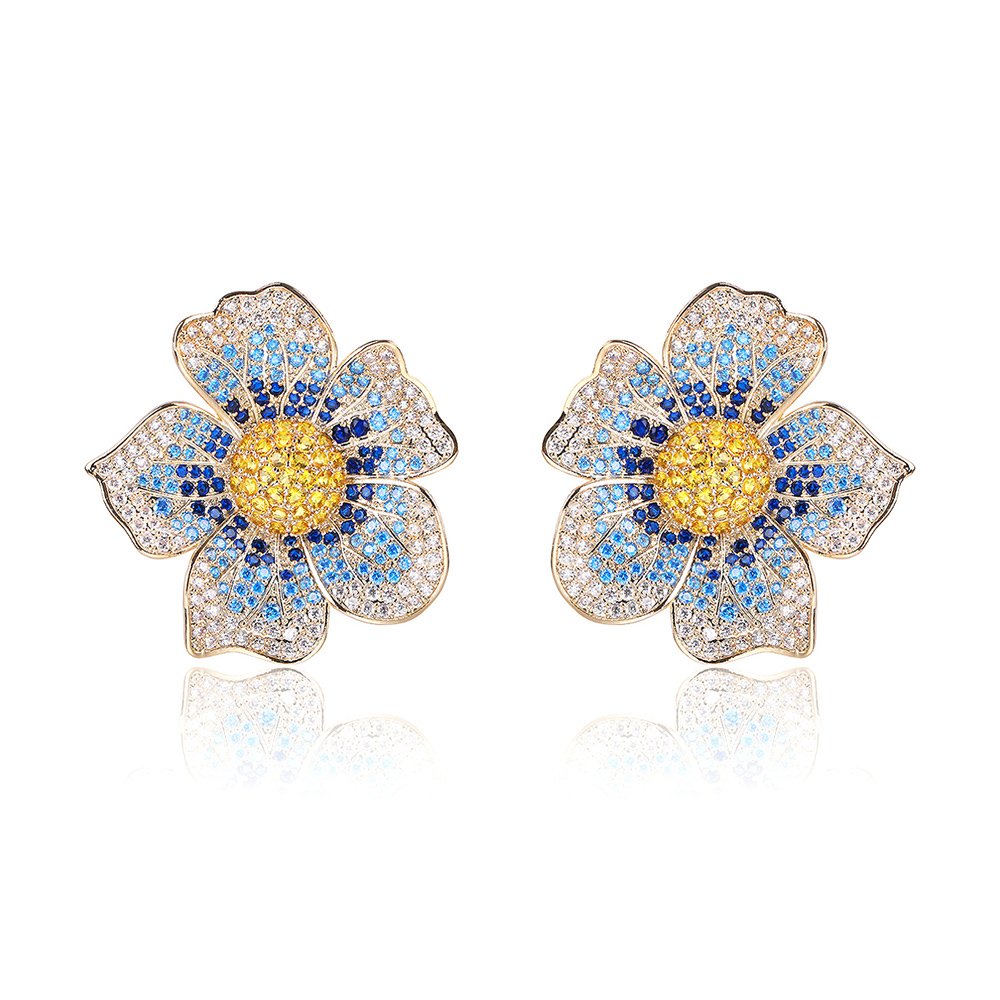 Wholesale Luxury Zircon Earrings – Gold Plated Flower Studs