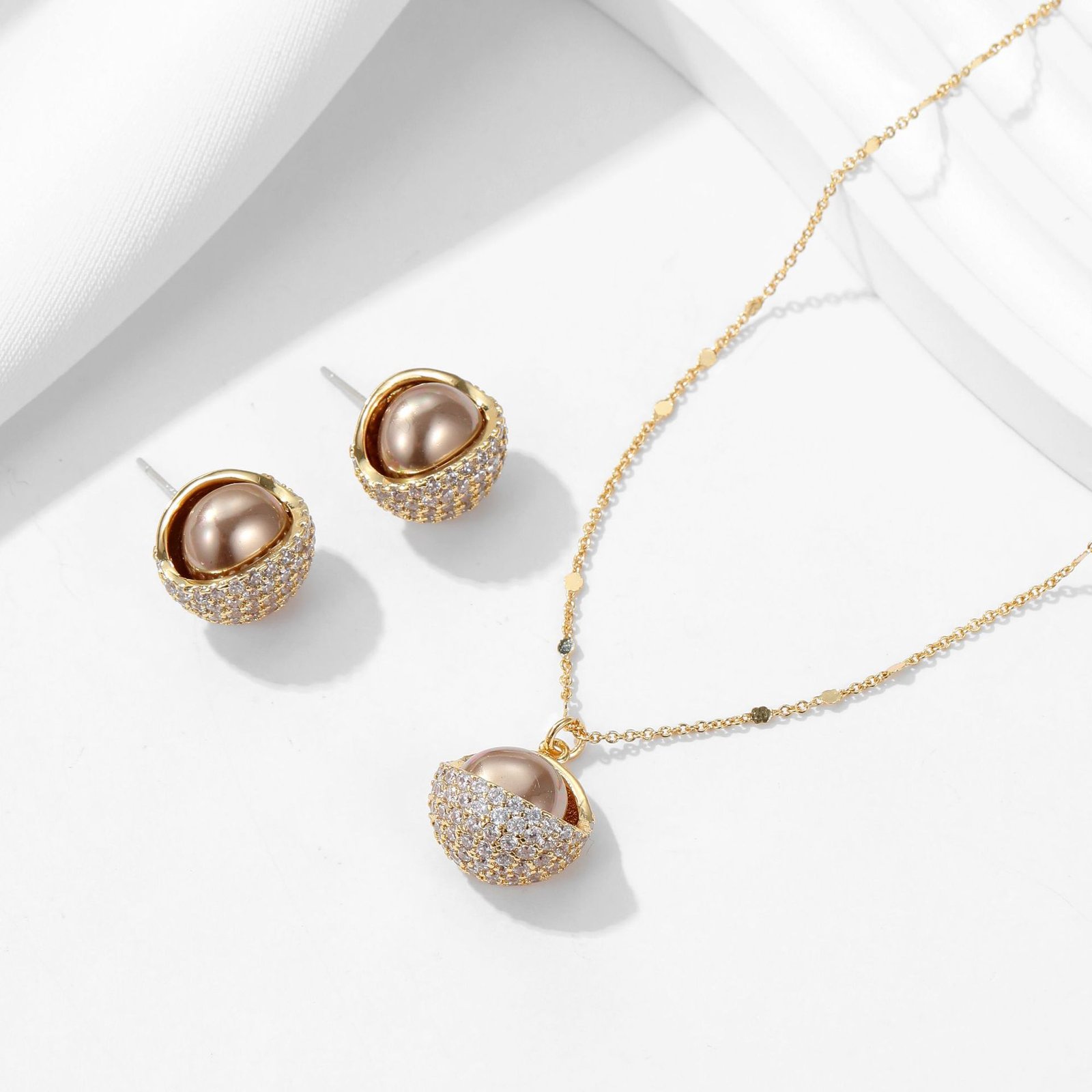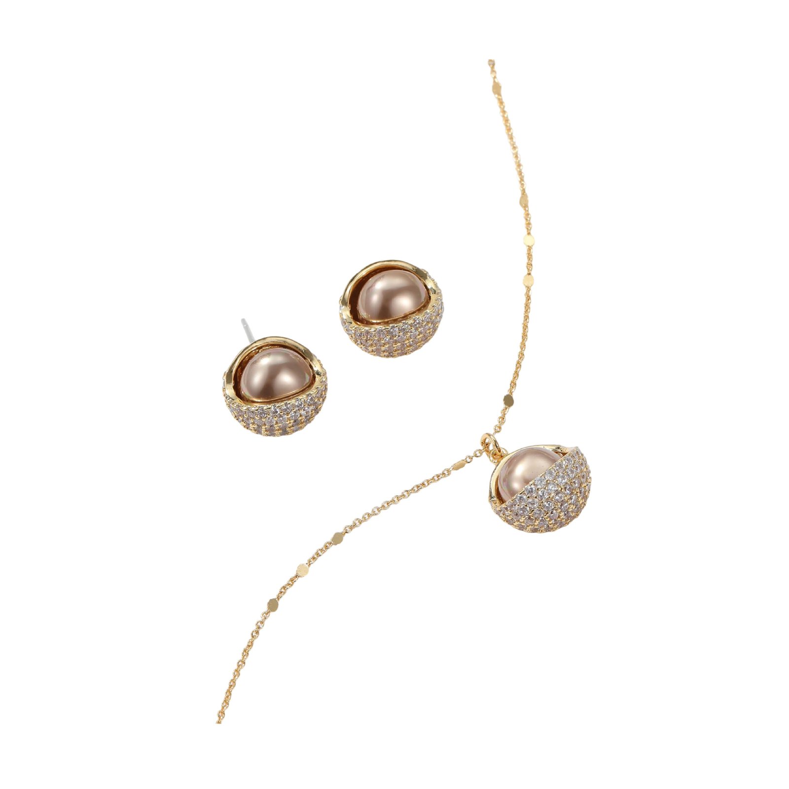 Home Shop New Arrivals 10/25 Small CZ Jewelry Set Wholesale Pearl Zircon Half Ball Set | Gold & Silver Minimalist