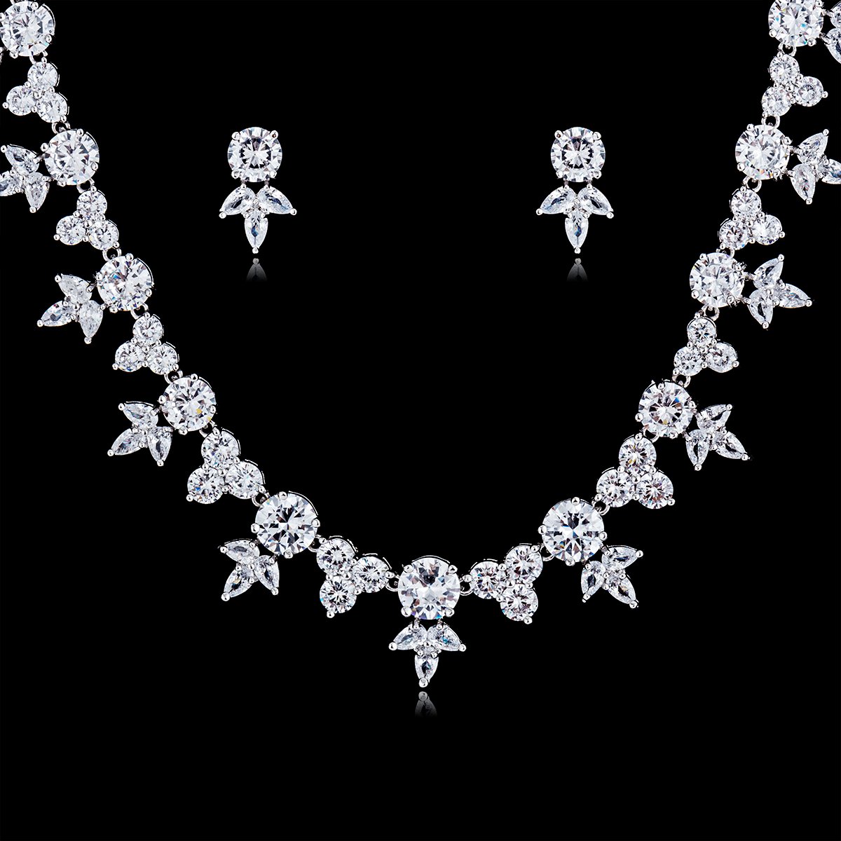 Platinum Plated Copper Bridal Necklace and Earring Set for Wholesale