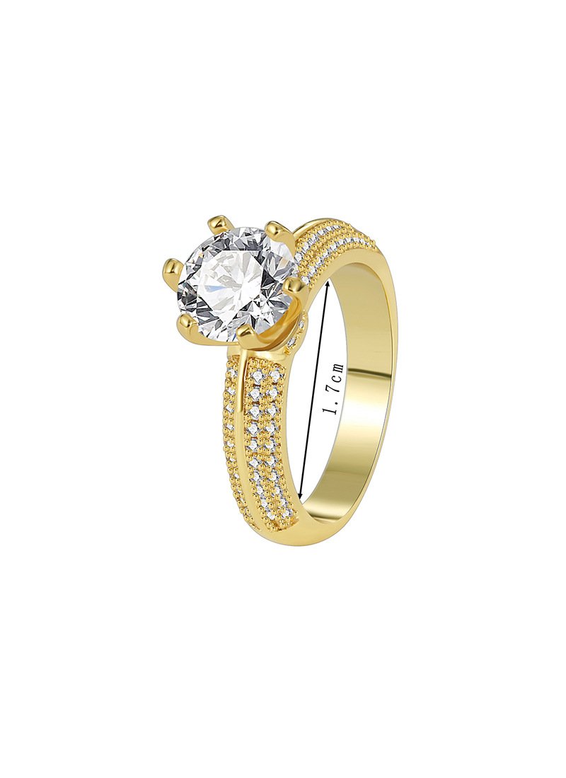 Wholesale six prong zircon ring in 18K gold plated brass – vintage style women’s fashion jewelry from JuneJewelry.com