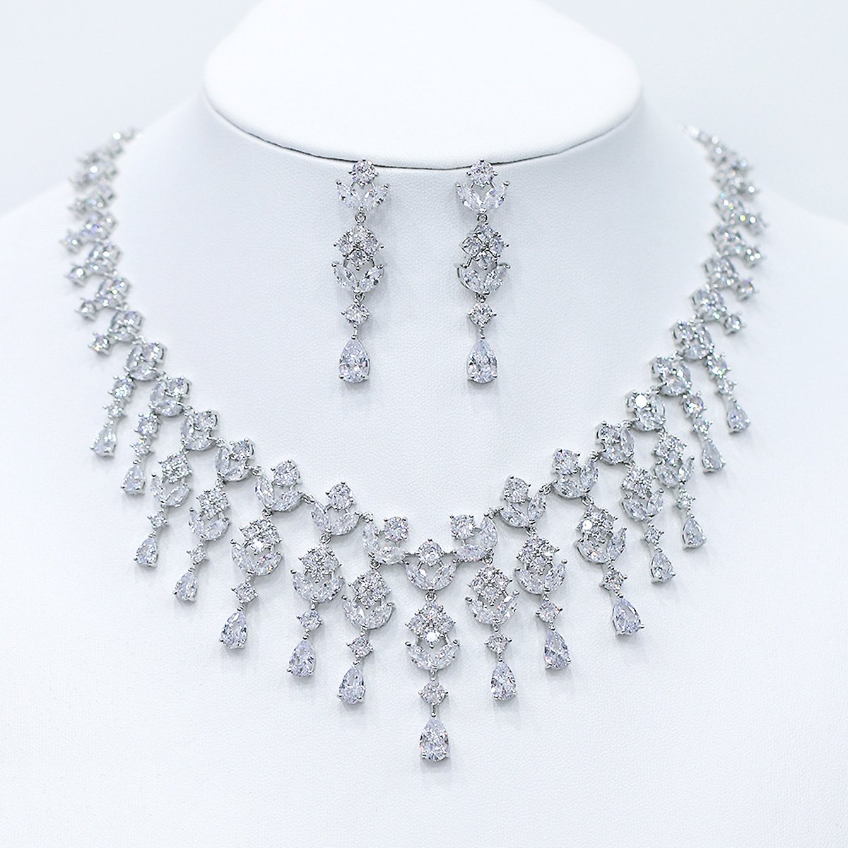 Wholesale Zircon Drop Necklace Set – Platinum Plated Brass